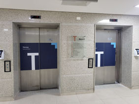 Sinalização de setores/salas, aéreas, vertical e horizontal, com adesivos com proteção laminação, que permite a limpeza do material.
